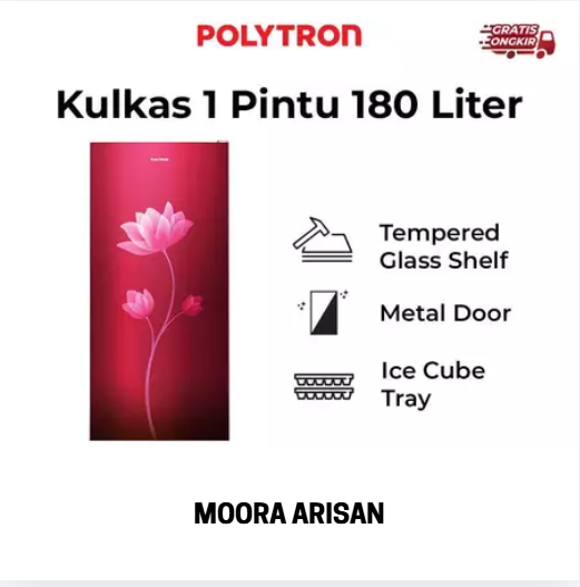 RF002 - POLYTRON Kulkas 1 Pintu Metallic 180 Liter PRB 189R