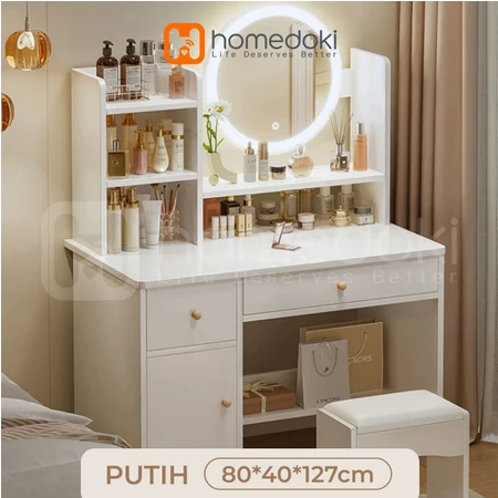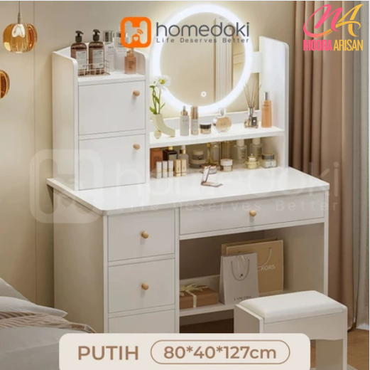 FN023 - Homedoki Meja Rias LED Minimalis Type 2-4 Laci (TANPA KURSI)