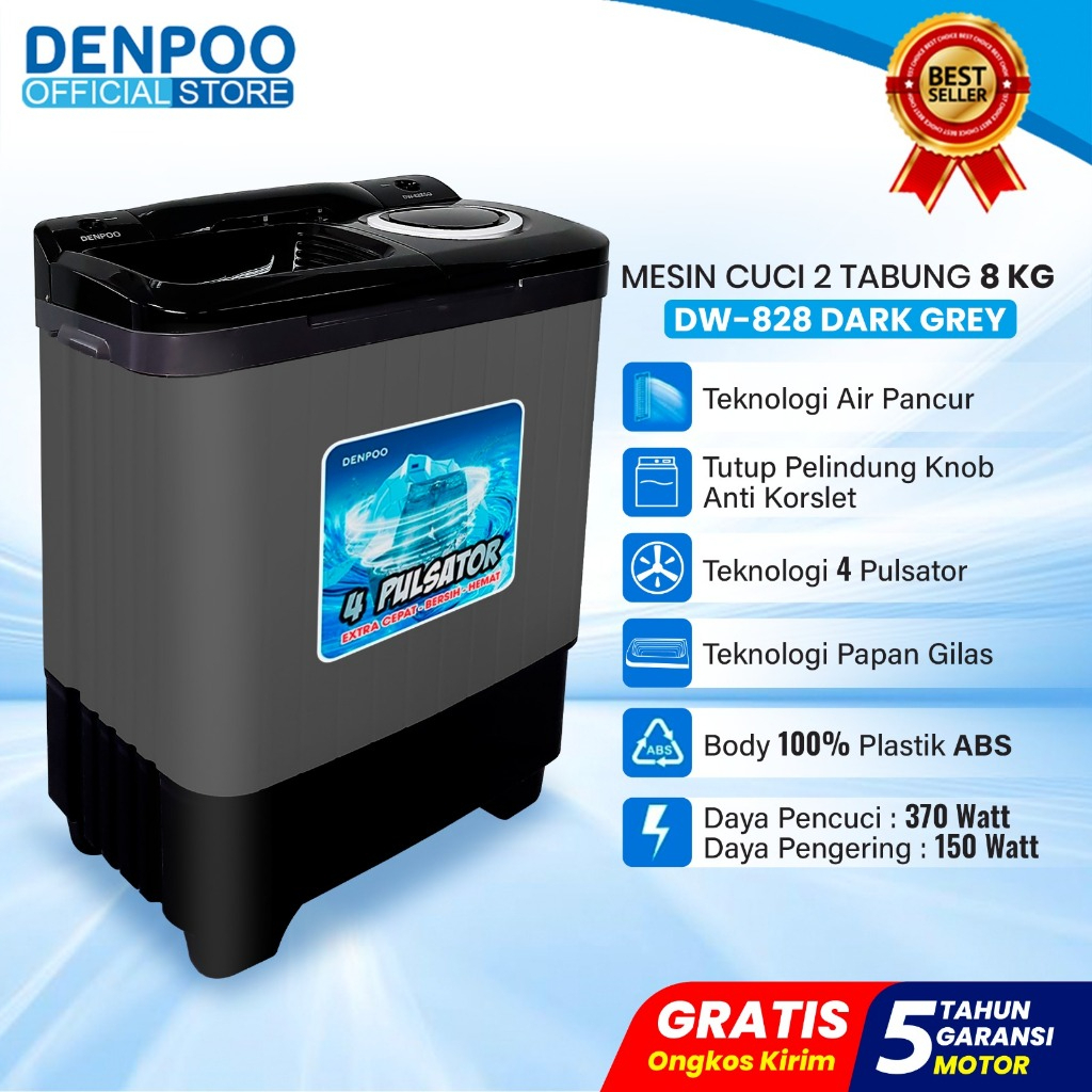 VC013 - Denpoo Mesin Cuci 2 Tabung DW 828 8KG 4P